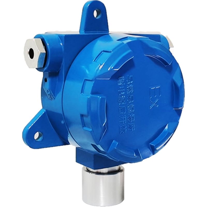 二氧化氮气体检测探测器,采用铸铝隔爆型壳体,作为防护外壳,同时具有体积小巧重量轻安装方便的特点,该二氧化氮气体浓度含量检测变送器,以电化学二氧化氮传感器作为二氧化氮浓度含量检测元件,将二氧化氮浓度含量转换为电信号,再由变送板将微弱的电信号经放大器放大后送入微处理器进行信号处理,并转换为标准(4~20)mA电流信号,再输送给需要的上位机设备。该变送器与上位设备的连接仅需要一根两芯的电缆线即可,且连接不区分正负极性,它将信号与电源叠加在一起,既能给设备供电亦能传输信号,大大解决了现场施工布线的难度,使设备调试安装维护更加快捷方便。另外此变送器测量精准、反应迅速、寿命长、稳定可靠、非常适合石油化工、冶金、环境监测等需要对二氧化氮浓度含量监测的场所。